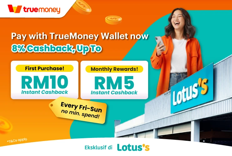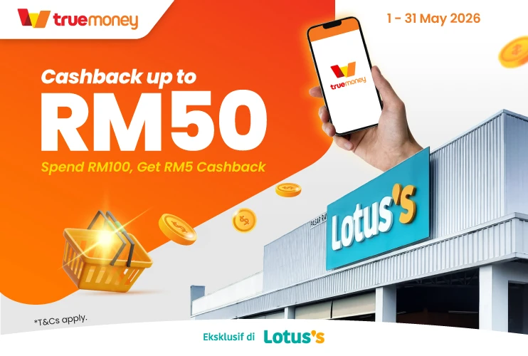 Spend RM150 with TrueMoney at Lotus's and get RM10 cashback!